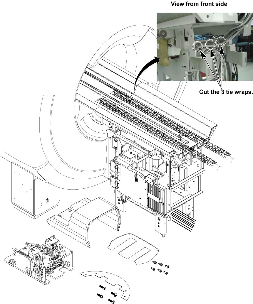- Move the Cable and track assy with bracket to the open space. (Outside of Magnet Room)