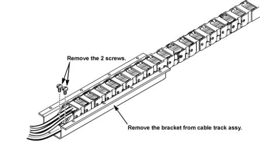 - Remove 2 screws from cable and track assy.