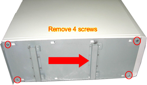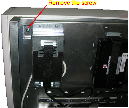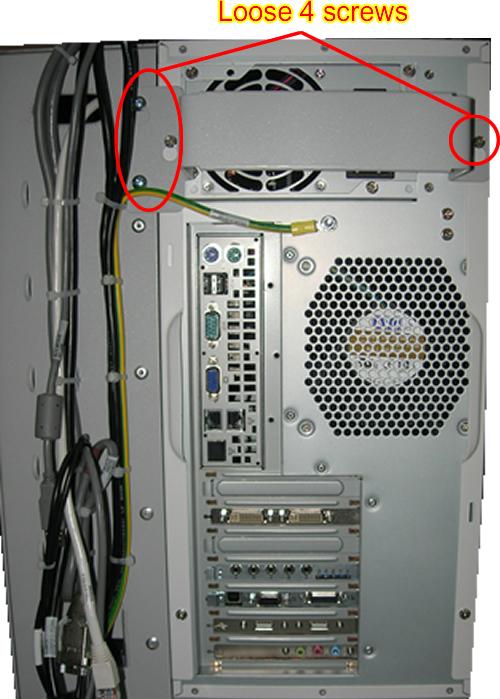 - Loosen the four screws that are fixing the bracket on the PC