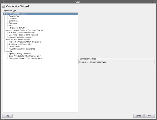 Figure 13. Connection Wizard GUI (network printer setup)