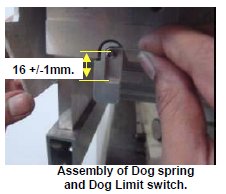 - Insert the spring into the Limit switch dog, assemble to the