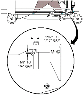 - 1/8 inch (3.18 mm) gap - loosen lock nut and tighten or loosen the cable adjustment screw to achieve the proper gap. Tighten lock nut. See Figure 2.