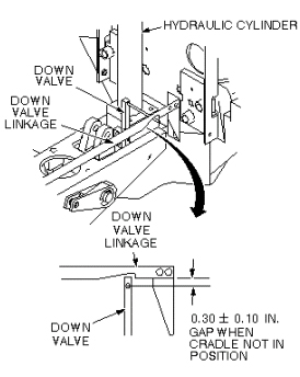 - Adjust for indicated gap in down valve linkage when cradle is