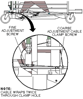 - Tighten or loosen the cable adjustment screw so that the cradle release