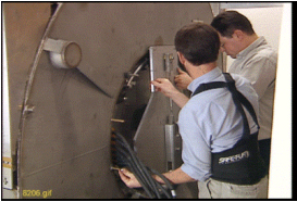 - Slowly pull the gradient coil forward on the tube, and watch the clearance around the coil to ensure it is concentric and level with the bore.