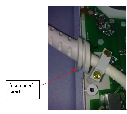 - Place strain relief in cut-out.