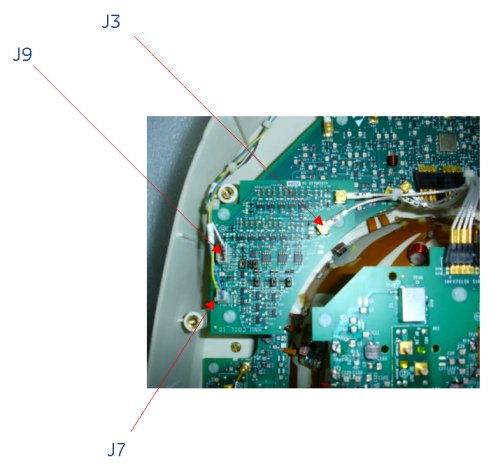 - 5. Connect the J7 and J9 DC Connector of System Cable Assy to Coil ID PCB at J7 and J9 as shown in Figure 2. Connect the J3 DC PCX Connector to J3 DC PCX connectors on Coil ID PCB. Verify that all labels on the connectors match those on the Mux Board and Coil ID Board.
