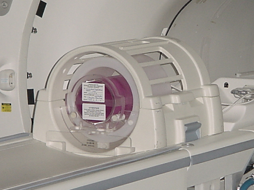 - Place the DQA phantom in the head coil. Positioning the fill plugs up