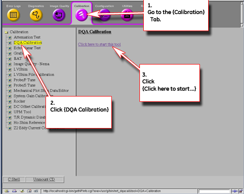 - Select Start the DQA Calibration by clicking on the Click here to start this tool. Refer to Figure 2.