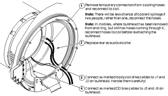 The replacement gradient coil is now completely installed. At this point, you may follow either of two procedures: