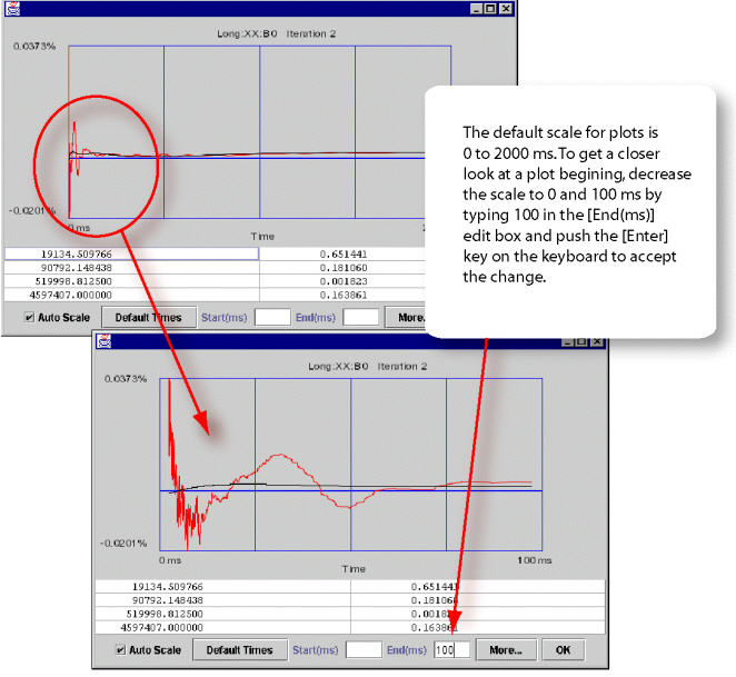 To focus on the front of the plot only, choose an End point (e.g., 100 ms). The default is 2000 ms.