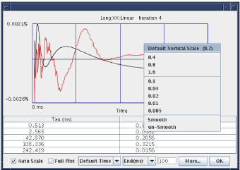 - Auto Scale - Select the [Auto Scale] radio button to toggle the state of the function. When the function is OFF, the default vertical axis limits are used. When ON, the vertical axis limits are set to the maximum and minimum values of the plotted curve.
