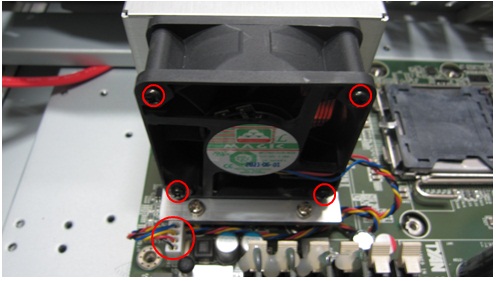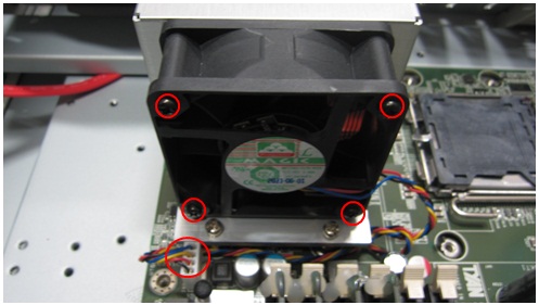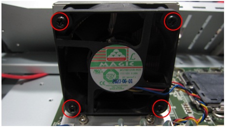 - Remove the four fasten screws on CPU fan.