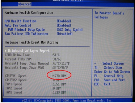 Figure 10. check the CPU fan1 speed in BIOS