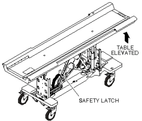 - Raise patient transport table with UP foot pedal (3 or 4 pumps)