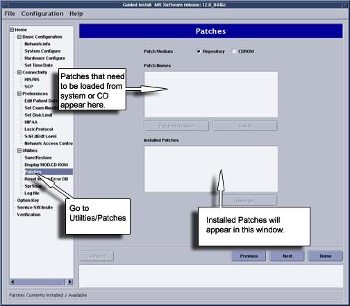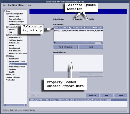 - To load a patch from Repository (located in /usr/g/insite/data), select Repository. The list of applicable patches that have been downloaded to the site via InSite will appear on the GUI.