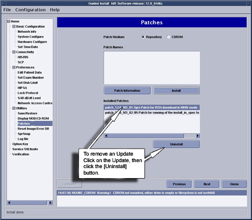 - Click on Uninstall. The patch will then be removed. See Figure 5.