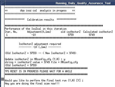 - Select the Test Option – type 1 [1= Iso center (Z) Calibration] Enter.