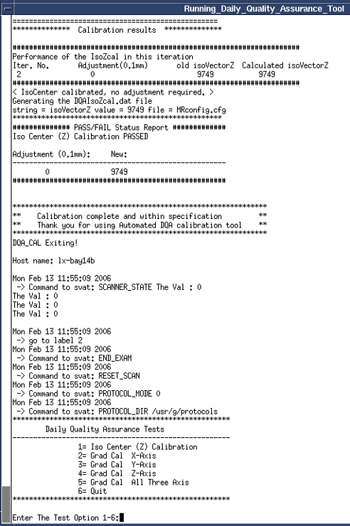 - Enter Test Step Option 6 when calibration is complete, then press Enter to quit.