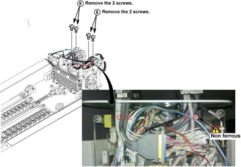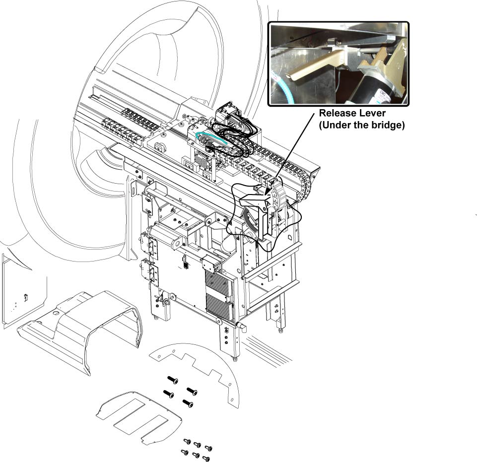 - Remove 4 screws from cable/track assy, and move the cable/track