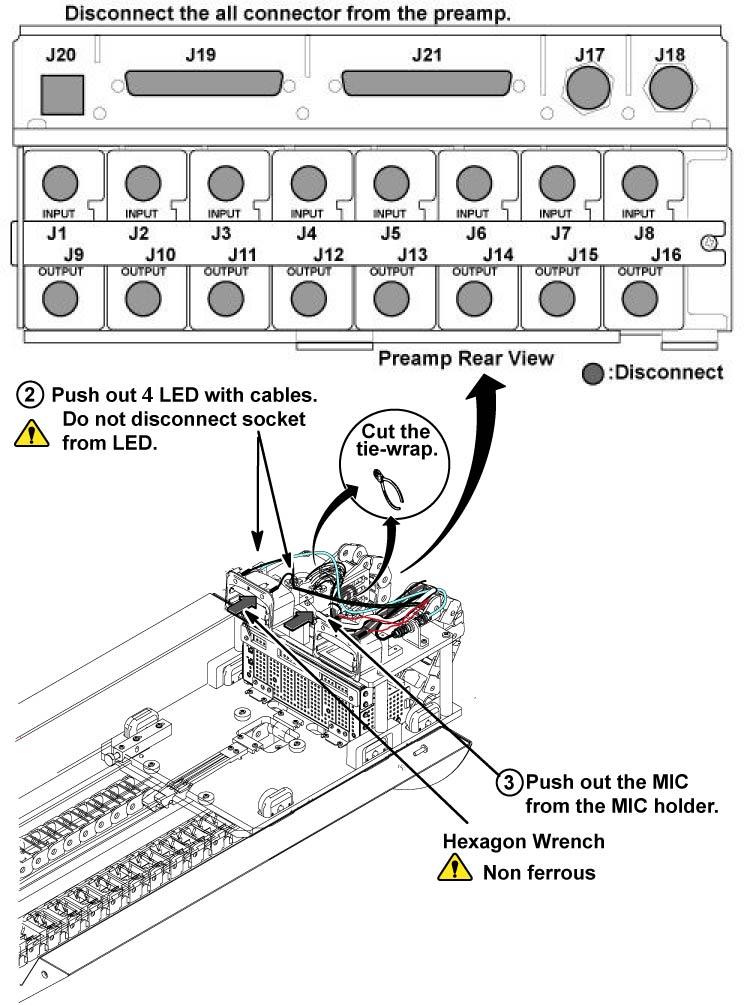 - Push out 4 LED and cables from the port with non-ferrous hexagon wrench.