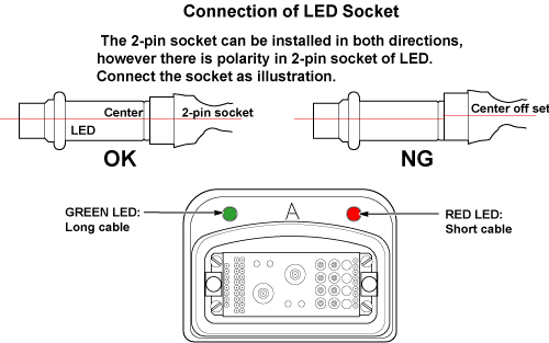 note:Connect the LED cable so that the cable is centered to the LED itself.