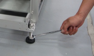 - Rotate the leveling pad stud by using 14mm spanner to adjust