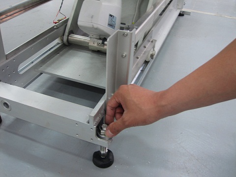 If the height is not within 81+/-20 mm, then adjust Leveling pads and level the Table height again by referring to Figure 6. (Turn leveling pads by same rotation numbers at four locations in this case.)