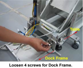 - Loosen four screws fixed table with dock frame.