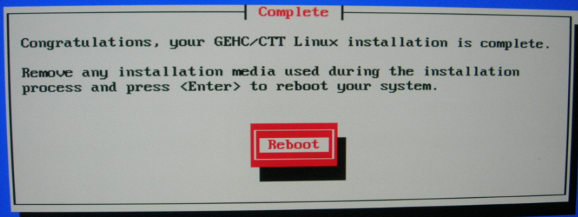 - When the OS software is loaded, a Complete and Reboot screen (shown in Figure 4) displays indicating that the