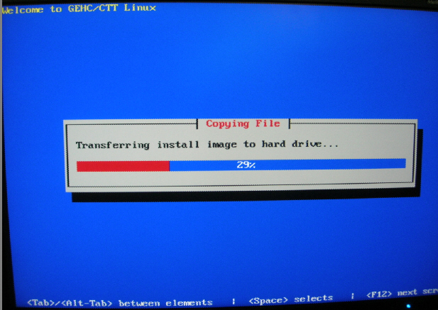 After about 90 seconds, a progress message displays, indicating that the install image is being transferred. (See Figure 2.)