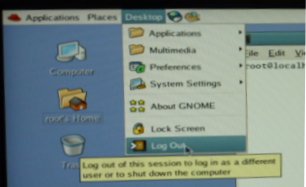 - Reboot the system, by selecting Desktop on the left corner of the monitor, then Logout, then Restart the computer, and then OK.(SeeFigure 28 and Figure 29)