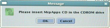 If the disk is ejected automatically with a message window “Please Insert MrpApps CD in the CDROM drive” is showed, insert disk to the drive manually; then wait until loading completed which can judge from the indicator light. It takes around 30 seconds, then click “OK” on the message prompt.