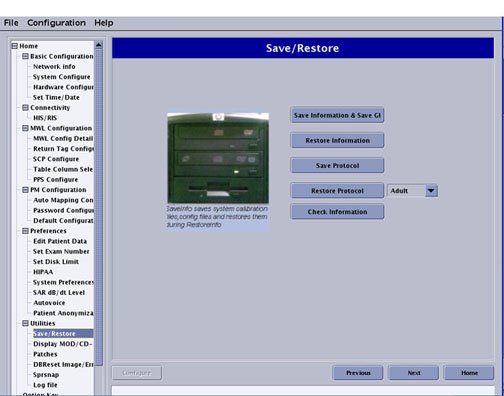 select Save/Restore to open the Save/Restore screen shown in Figure 18.
