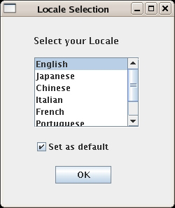 - When the Locale Selection window (shown