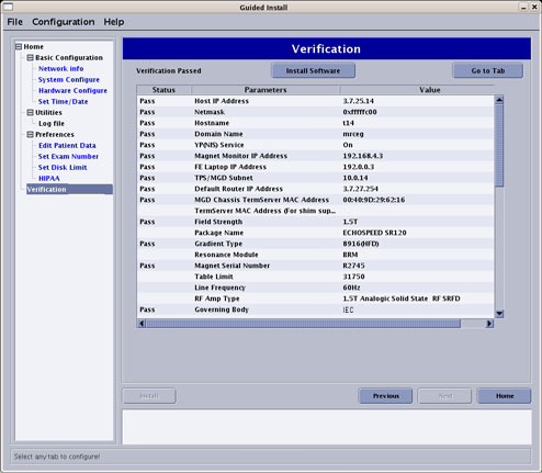 - If all entries pass verification at this point, click Install Software to begin the MR Applications load. If