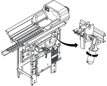 caution- Remove four mounting bracket screws and loosen lower set screws.