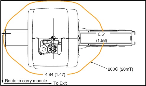 - With the last screw removed, take off the motor and its frame from the bridge. Then carefully remove the motor from Magnet Room by placing the motor on the floor and against the wall farthest from the magnet. The service path to take the motor out of the scan room is shown in Figure 3.