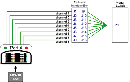 The Multicoil Receive Chain Tool provides a means of diagnosing problems in Multicoil Receive (MCR) chain hardware, without use of coils. The tool sends signals down the individual paths to isolate specific channels in the receive chain. The tool’s Graphical User Interface (GUI) guides the user through the various steps involved in running the tool and troubleshooting the problem. The GUI has built-in instructions and detailed setup instructions, troubleshooting flowcharts and documents that will help facilitate rapid diagnosis of the problem. There are two levels of tests that can be run using the MCR III tool: Default and Individual. Once you've decided to use MCR III tool, determine which level of test your situation requires. The default and port-specific levels of tests offer increased user-friendly automation that is been omitted from the individual tests by design. Therefore, it is imperative to identify which level of tests you need to perform and then follow the instructions for that specific level.