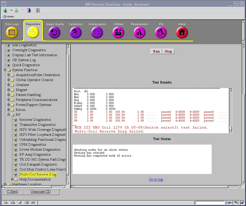 - If Running from the Common Service Desktop, click on the Diagnostics Tab and then, on the left pane, System Function->RF->Multi-Coil