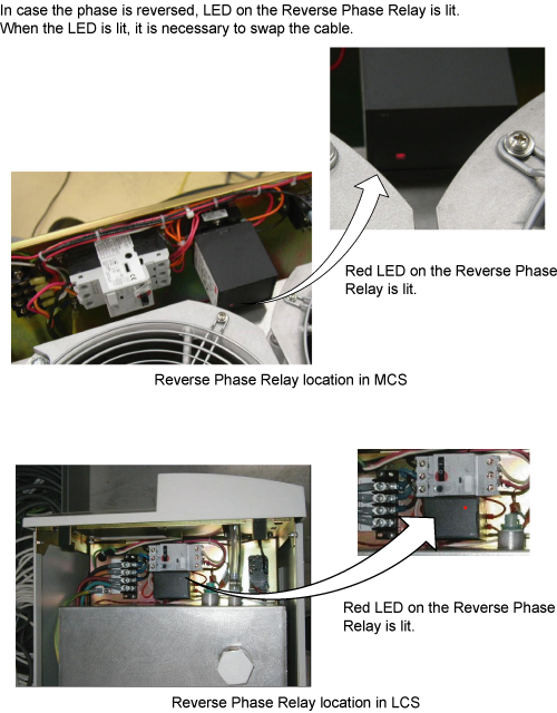 - Verify that LED on Reverse Phase Repay is NOT lit while MCS/LCS is running.