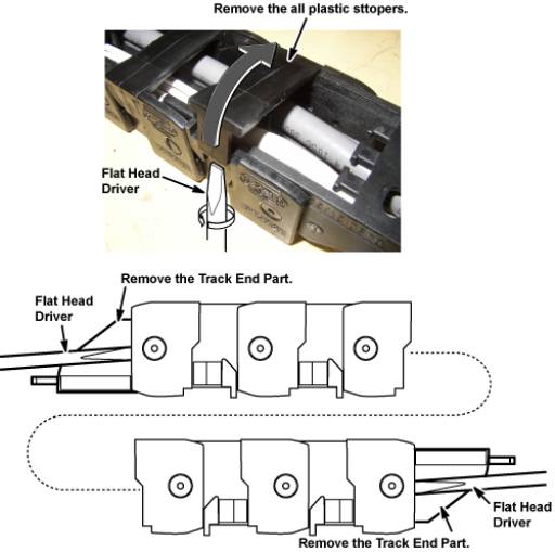 - Remove the Cable and track assy. Move it to the open space.(Outside of Magnet Room) Refer to Cable and Track Assy Replacement .