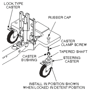 - Repeat steps Step 3 and Step 4 on any one of the other casters, because two caster clamp screws are required to force the tapered caster shaft out of the caster bushing on the defective caster.