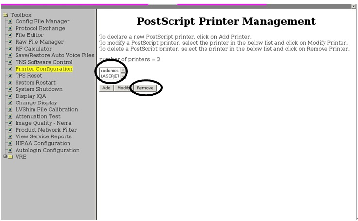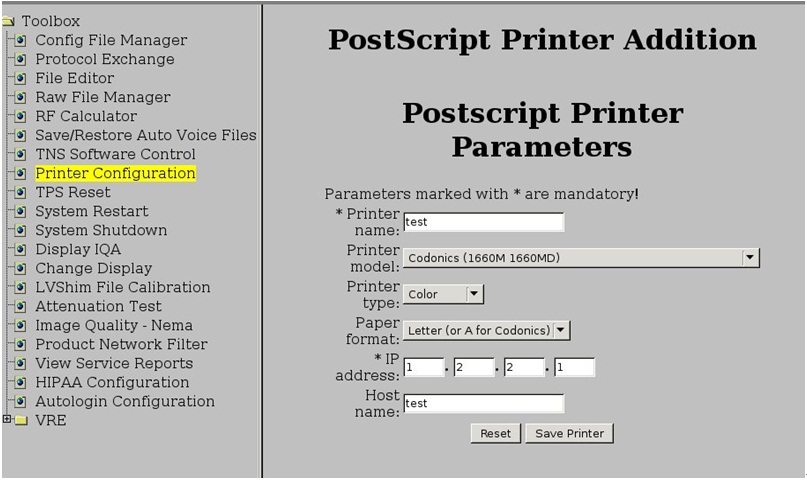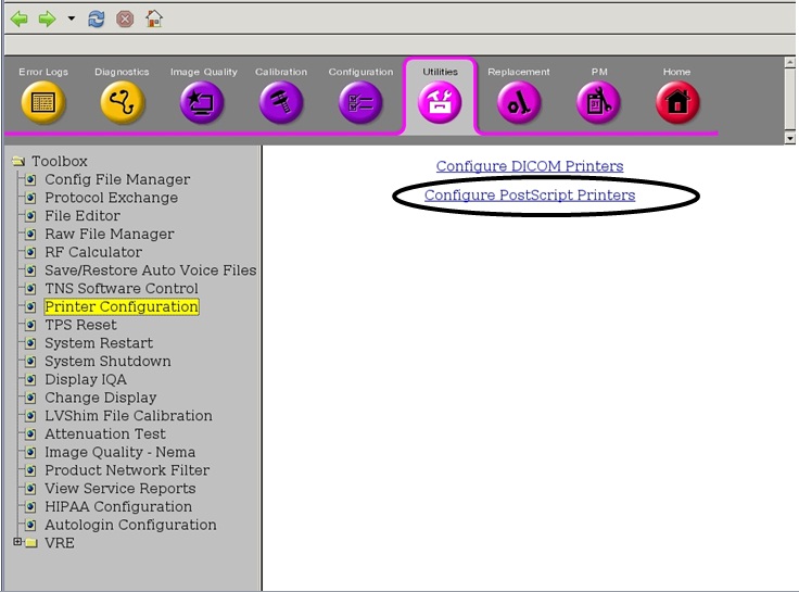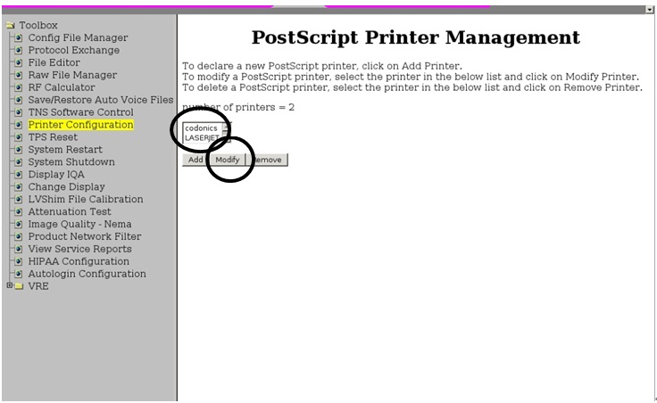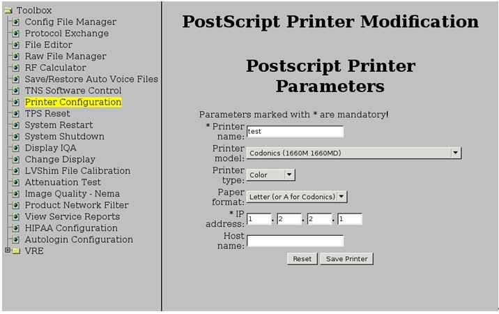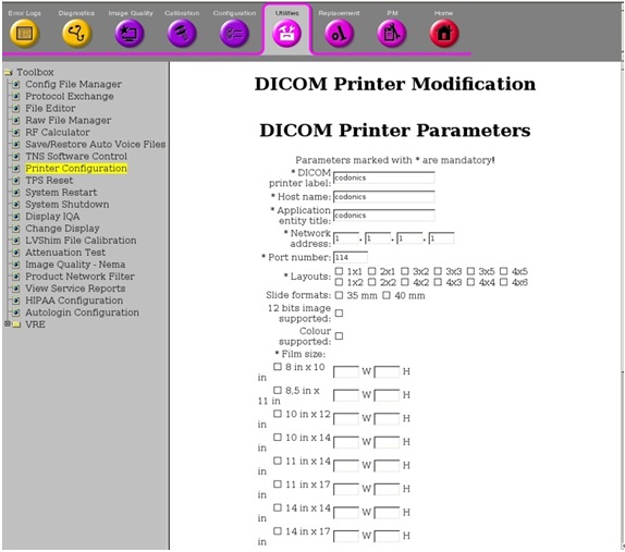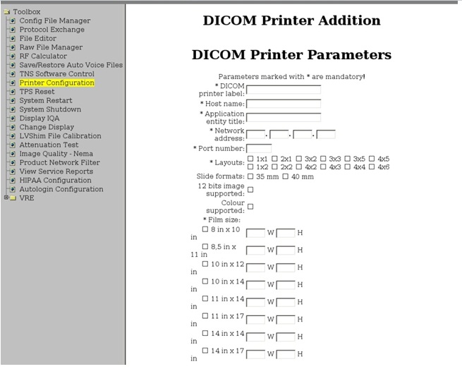 The DICOM/Post Script Print feature allows configuration of the filming function to accommodate filming to paper or film printer that is networked to the workstation through a DICOM/Post Script printer.