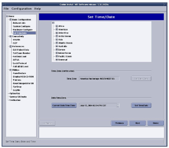 The Time/Date tab is the only tab that the Configure button will never be highlighted to set options. There are separate buttons for configuring this tab (see Figure 3). If you need to reconfigure the Host time and or date at any time, do the following: