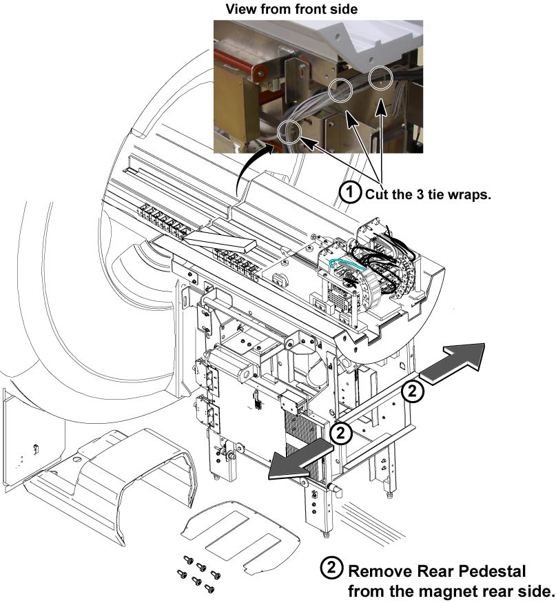 - Cut the 3 tie-wraps from the rear pedestal front side.