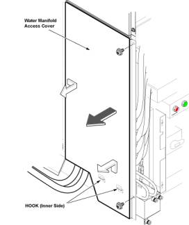 - Remove Water Manifold Access Cover by removing 2 screws. Refer