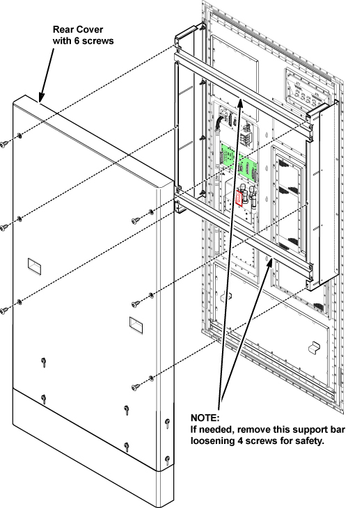 - Remove rear cover by removing 6 screws.
