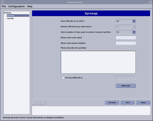 (For SV25.1) It is best to create an SprSnap as soon as possible and before a reboot after the system crash or problem occurs to ensure that the needed evidence is recovered. The SprSnap can be run from either the Common Service Desktop or from a C Shell terminal.