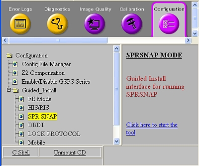 - Open the Common Service Desktop, and under the Configuration tab, expand Guided Install and select SPR SNAP. Click the Click here to start the tool link.